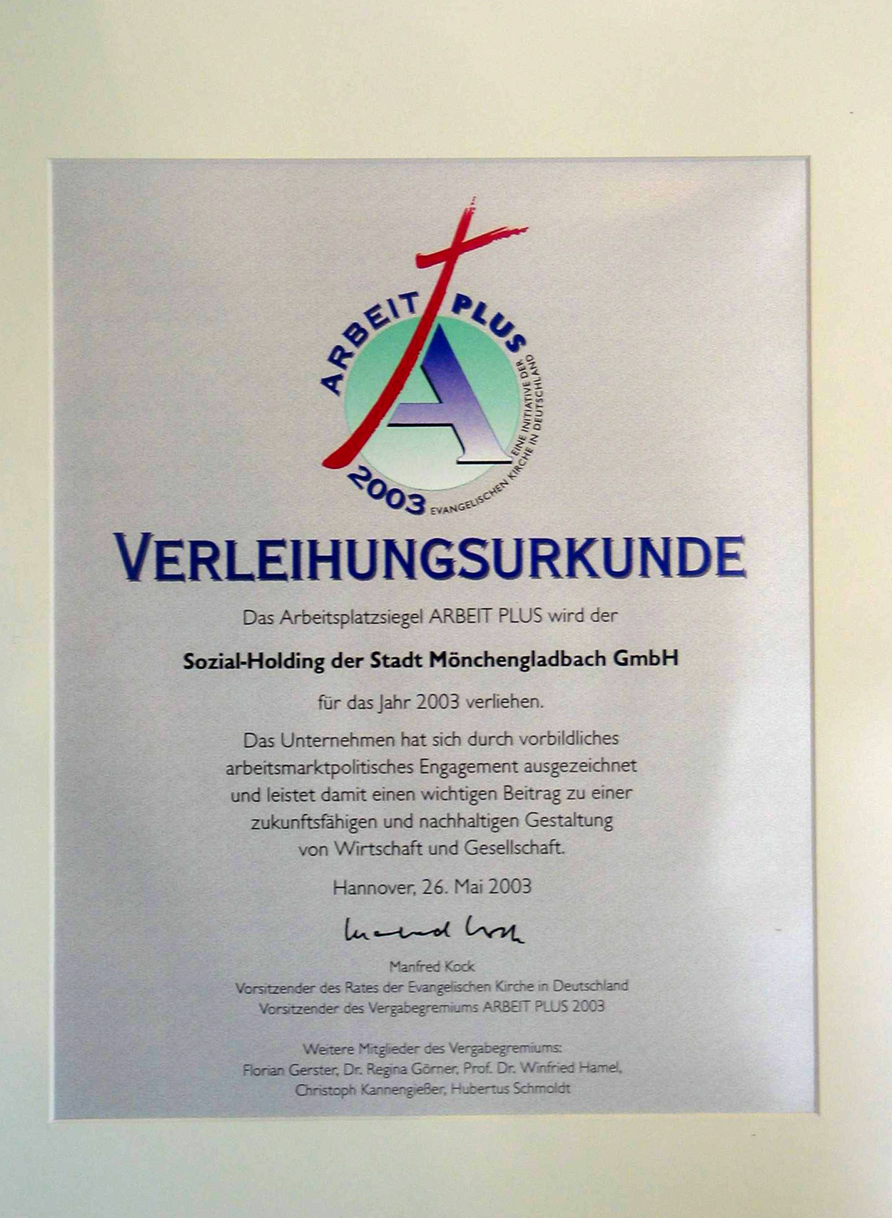 Nach der erstmaligen Verleihung im Jahr 2001 wurde die Sozial-Holding 2003 erneut mit dem Gütesiegel ARBEIT PLUS ausgezeichnet. Weitere Auszeichnungen folgten in den darauffolgenden Jahren – insgesamt erhielt das Unternehmen das renommierte Qualitätssiegel sechsmal.